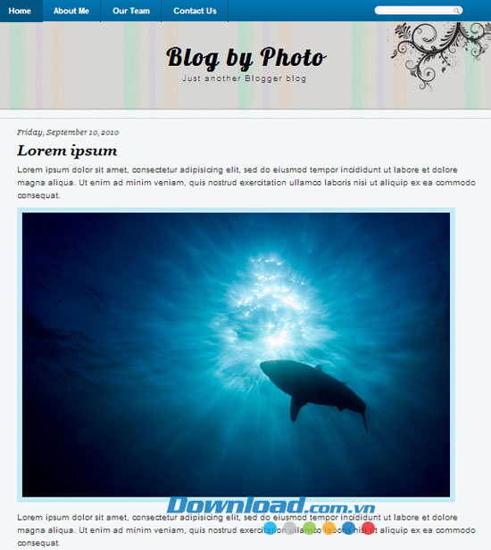 Blog by Photo là một mẫu blogger miễn phí với 1 cột, được thiết kế độc quyền cho blogger, bao gồm các biểu tượng đánh dấu mạng xã hội và các trình đơn thả xuống. Mẫu được thiết kế phù hợp với blog chủ đề hình ảnh cá nhân.