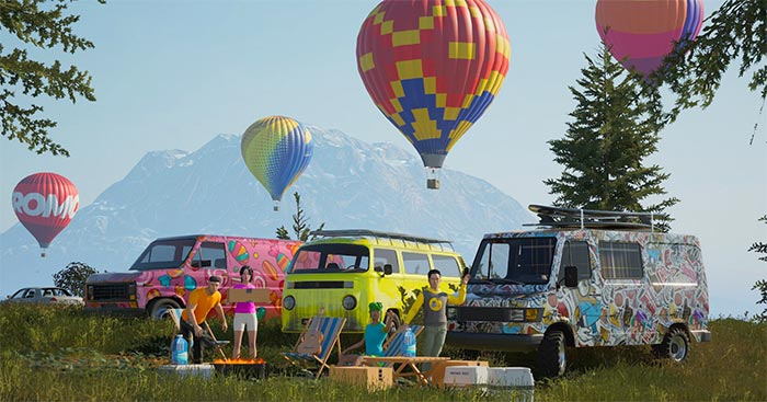 - Chơi solo hoặc hợp tác tối đa 4 người để cùng nhau lái xe, dựng trại và thưởng thức âm nhạc bên đống lửa trại mỗi đêm.