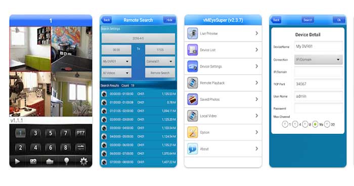 Nói khái quát, vMEyeSuper là một công cụ cho phép bạn xem và kiểm soát hình ảnh trực tiếp của bất kỳ camera an ninh nào mà bạn đã đồng bộ hóa với thiết bị Android của mình. Theo mặc định, ứng dụng cho phép bạn có tối đa bốn camera trên màn hình.