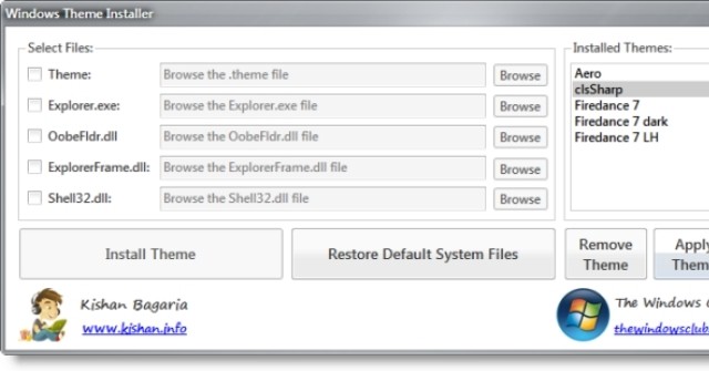 Như chúng ta đều biết, Windows không cho phép cài đặt theme ngoài. Bạn phải vá 1 vài file hệ thống để làm được điều đó. Tuy nhiên, Windows Themes Installer 1.1 sẽ tự động xử lý khâu này để có thể thay đổi theme cho Win 7, Win Vista. Nếu muốn khôi phục file vá, bạn có thể sử dụng Universal Theme Patcher.