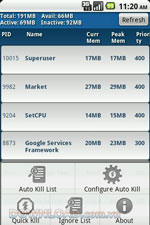 Người dùng có thể thêm các ứng dụng vào danh sách ‘auto kill’ và nó sẽ tự động xóa các ứng dụng này khỏi bộ nhớ khi chúng đạt tới mức ưu tiên đã đặt trước. Một cách khác để cấu hình tự động xóa là đặt ứng dụng xóa tất cả các ứng dụng trừ ứng dụng bạn đã thêm vào danh sách bỏ qua.
