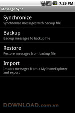 • Đồng bộ message MMS và SMS với file đã sao lưu
