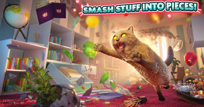 Điều hướng nhân vật trong game dễ dàng, đơn giản: Cần điều khiển bên trái để di chuyển con mèo, sử dụng nút nhảy ở bên phải để bay và vuốt để khám phá môi trường xung quanh. Giải phóng sức mạnh của chú mèo bằng nút đập vỡ đồ vật.