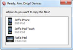 Ready, Aim, Drop! hỗ trợ tất các các thiết bị như iPad, iPhone và iPod touch. Bạn có thể gửi các tập tin đến nhiều thiết bị cùng lúc.
