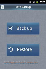 Safe Backup for Android là một ứng dụng rất dễ sử dụng, có thể sao lưu tất cả dữ liệu của người dùng. Ứng dụng này rất dễ sử dụng và không yêu cầu truy cập root. Từng bước thực hiện đều có một hướng dẫn nhỏ đi kèm. Đây là ứng dụng duy nhất có thể lưu các file sao lưu trên máy tính Windows.
