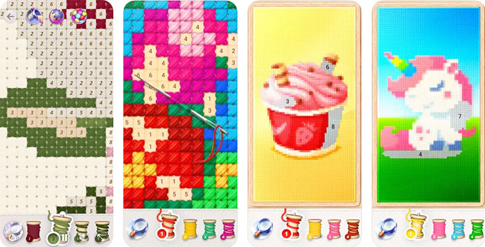 Hình ảnh tranh vẽ trong Thêu Chữ thập Kỳ diệu: Tô màu cho iOS được đánh giá cao. Với mỗi bức tranh bạn sẽ tiến hành tô theo màu đã được đánh số sẵn, mỗi màu mang một số nên người dùng chỉ cần kiên trì, tỉ mỉ và tập trung để có thể hoàn thành bức tranh một cách đẹp mắt nhất.