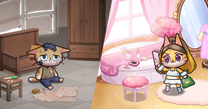 Tôi có một chú mèo muốn trở thành ngôi sao. Hãy giúp ước mơ của nó trở thành hiện thực thông qua game mô phỏng thiết kế và trang điểm thú vị Makeover tycoon (tên khác là Idle cat salon tycoon ).